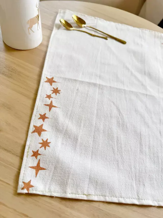 Descubre el Individual Estrellas Dorado, una pieza artesanal que aporta un toque de distinción y elegancia a tu mesa. Esta estampa a mano dorada en forma de estrella, con dimensiones de 30x40 cm, está cuidadosamente diseñada para resaltar en cualquier ambiente.