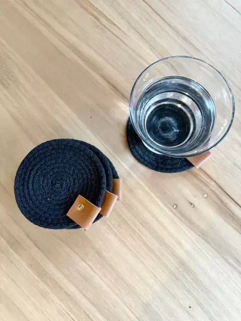 Posavasos confeccionado en cordon de algodón, mide 10cm de diámetro aproximadamente.